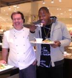 April 13, 2013 - 13:30Chicago Bear, Martellus Bennett enjoying a snack with Chef Tong.