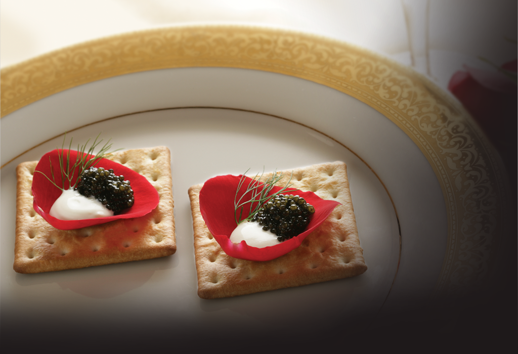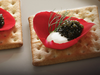served with a Cherry Tomato Saladwith Lemon-Lime Cilantro Vinaigrettegarnished with Hackleback Caviar